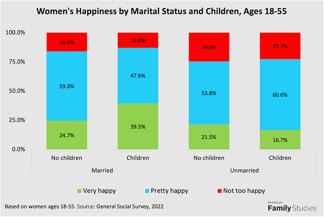 For women, marriage appears to correlate with increased happiness, with those who are married and have children reporting the highest levels of happiness.